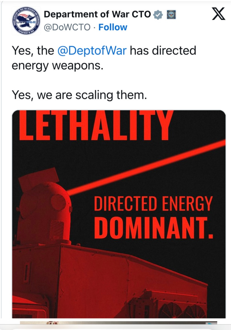 The Department of War has confirmed plans to expand the use of “directed energy weapons.”