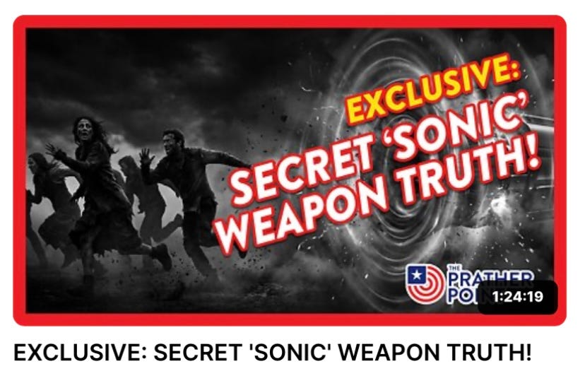 The very next day - the Pentagon announced they are scaling up Directed Energy Weapons (DEW). They did not say it was a “sonic” weapon.