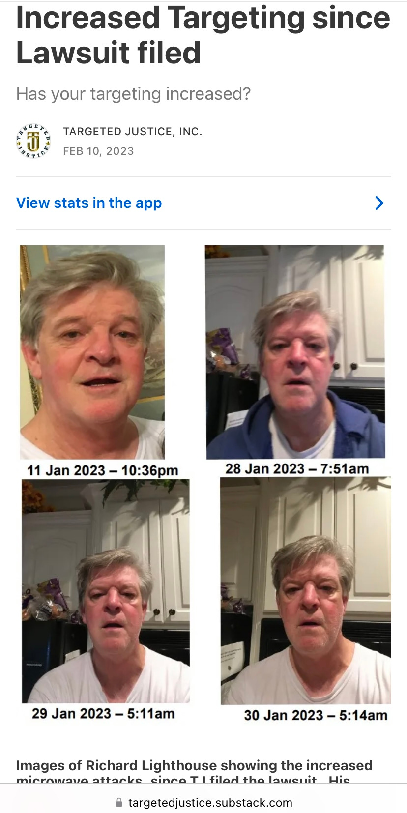 Sorry to hear about your attacks Richard, also thanks to Targeted Justice Team for fighting the big fight for freedom.