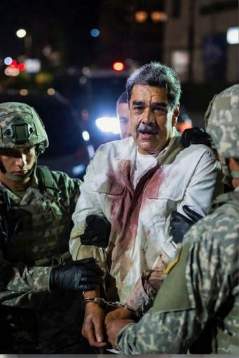 Venezuelan President Maduro was captured and his bloody shirt appears to show that he was bleeding from the nose or mouth. This appears to be consistent with reports that Venezuelan military guards were disabled, vomiting, nosebleeds, and became easy targets for US troops.