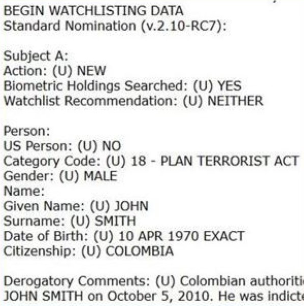 Derogatory Comments: (U//FOUO) Subject SMITH, John